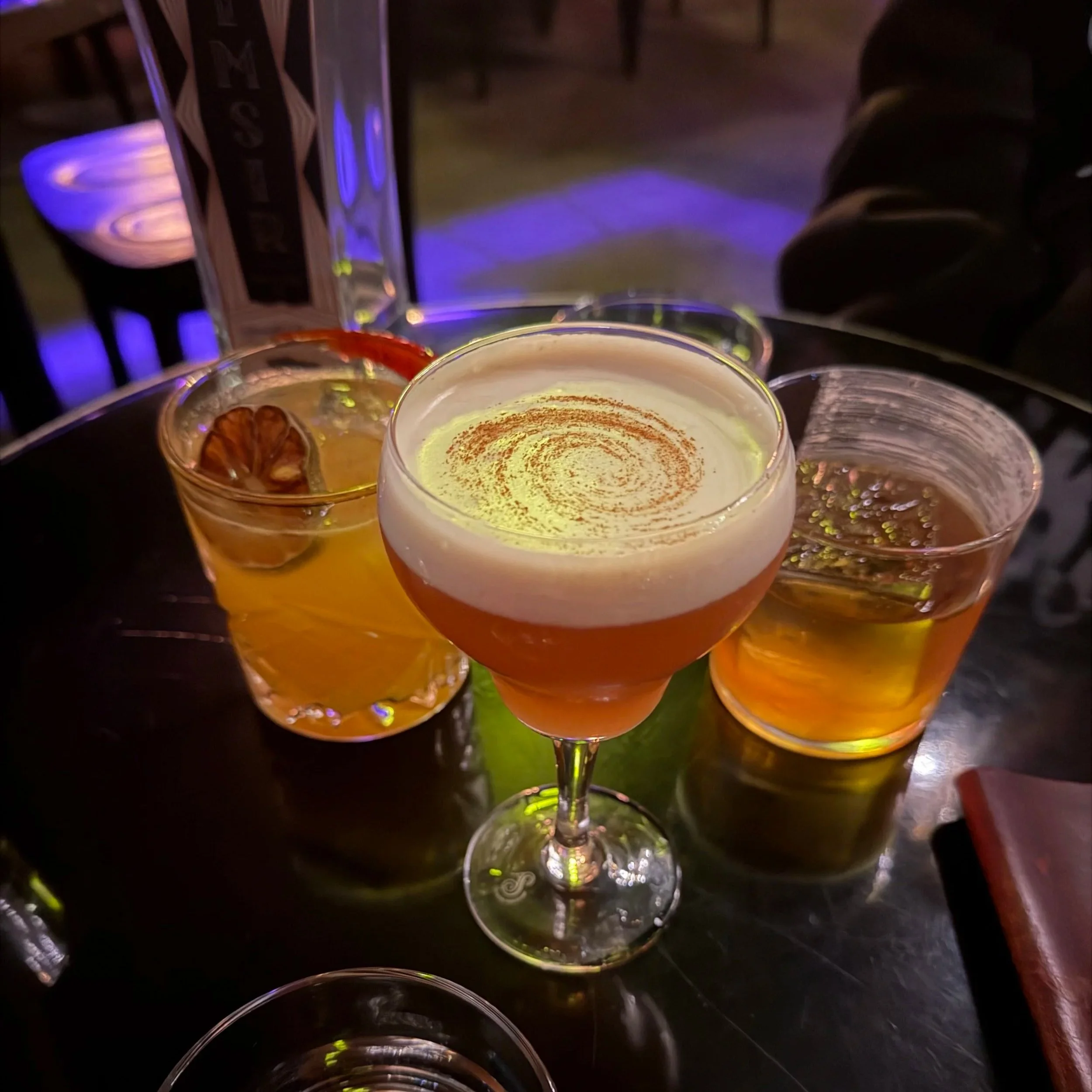 Cocktails, left to right: Fantasia, Nocturna, and Sangre de Dioses.