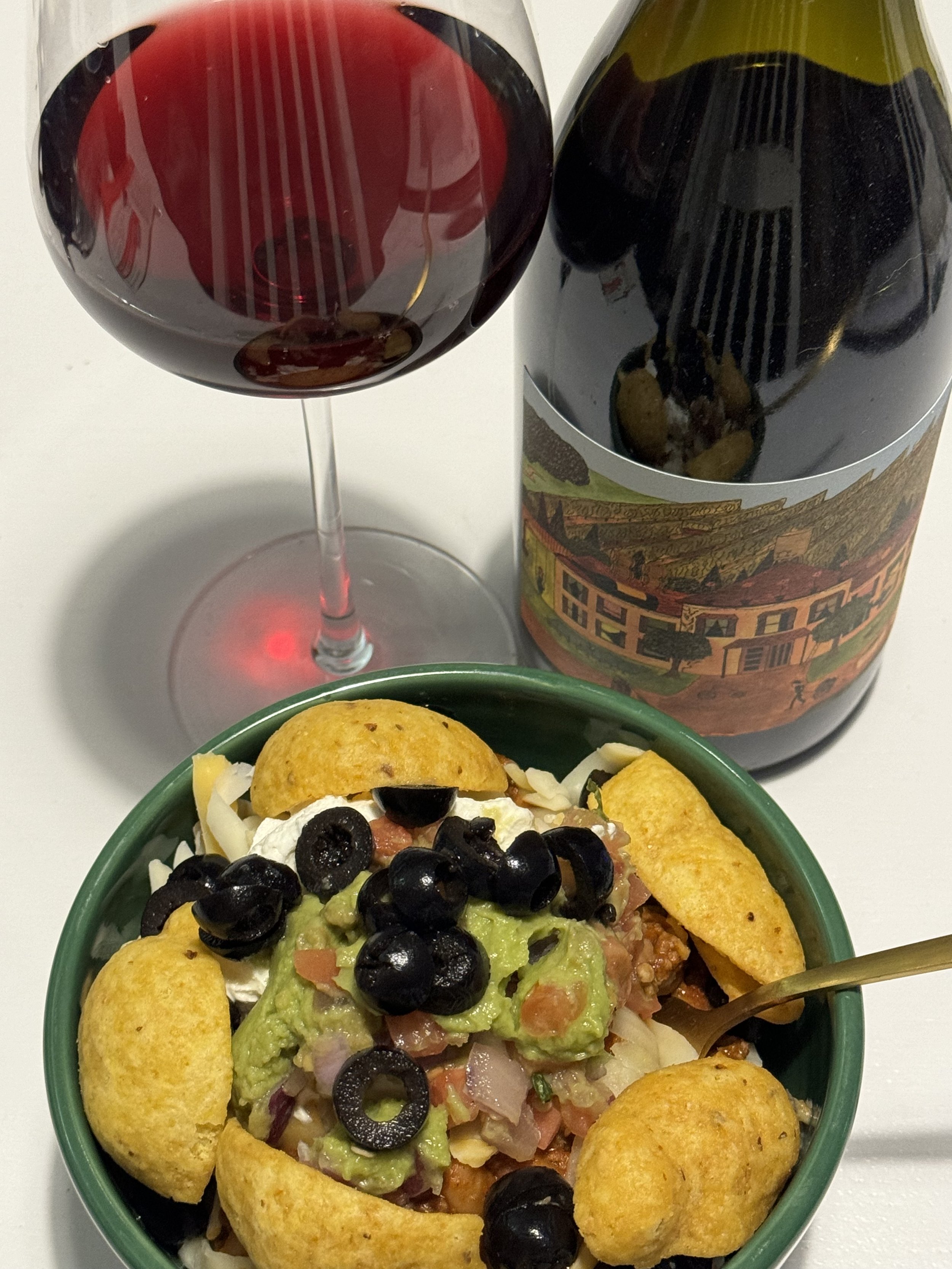 It turns out I had met my Viticulture instructor, Bryan Berenguer, back in November at the Indie Wine Mixer, and I had bought a bottle of his Human Cellars Gamay. What better night to crack it open? I enjoyed it with a thing called “Mexican Dinner,” a recipe from a place I lived that I’d rather forget during childhood. I had been craving it for a while, and decided today was that day. Also watched Lessons in Chemistry, as I had just finished the book.