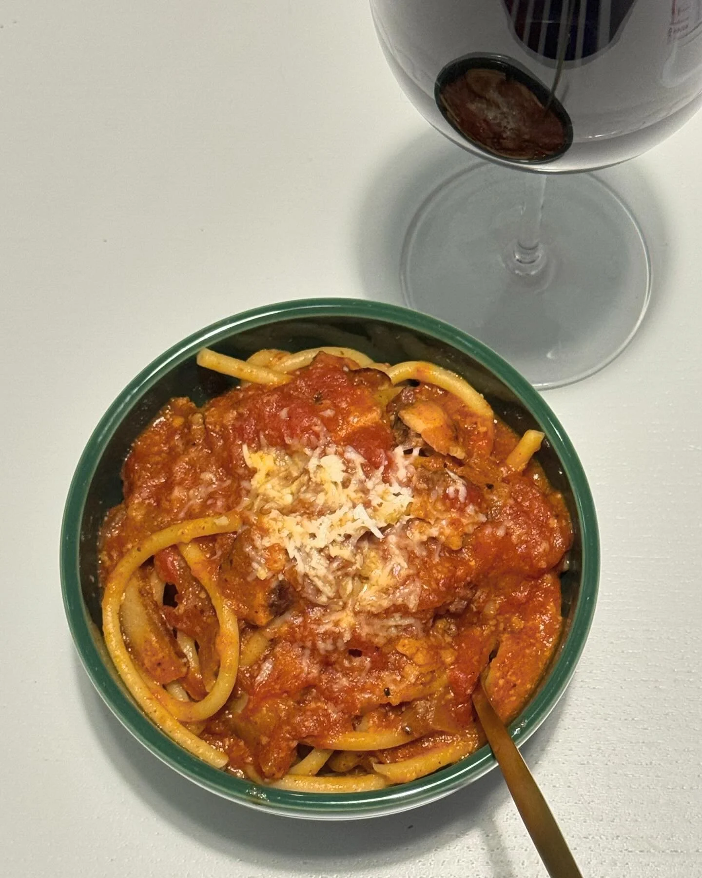 Bucatini all’Amatriciana (made by moi) and Quady North 2021 Syrah, Rogue Valley, Oregon.