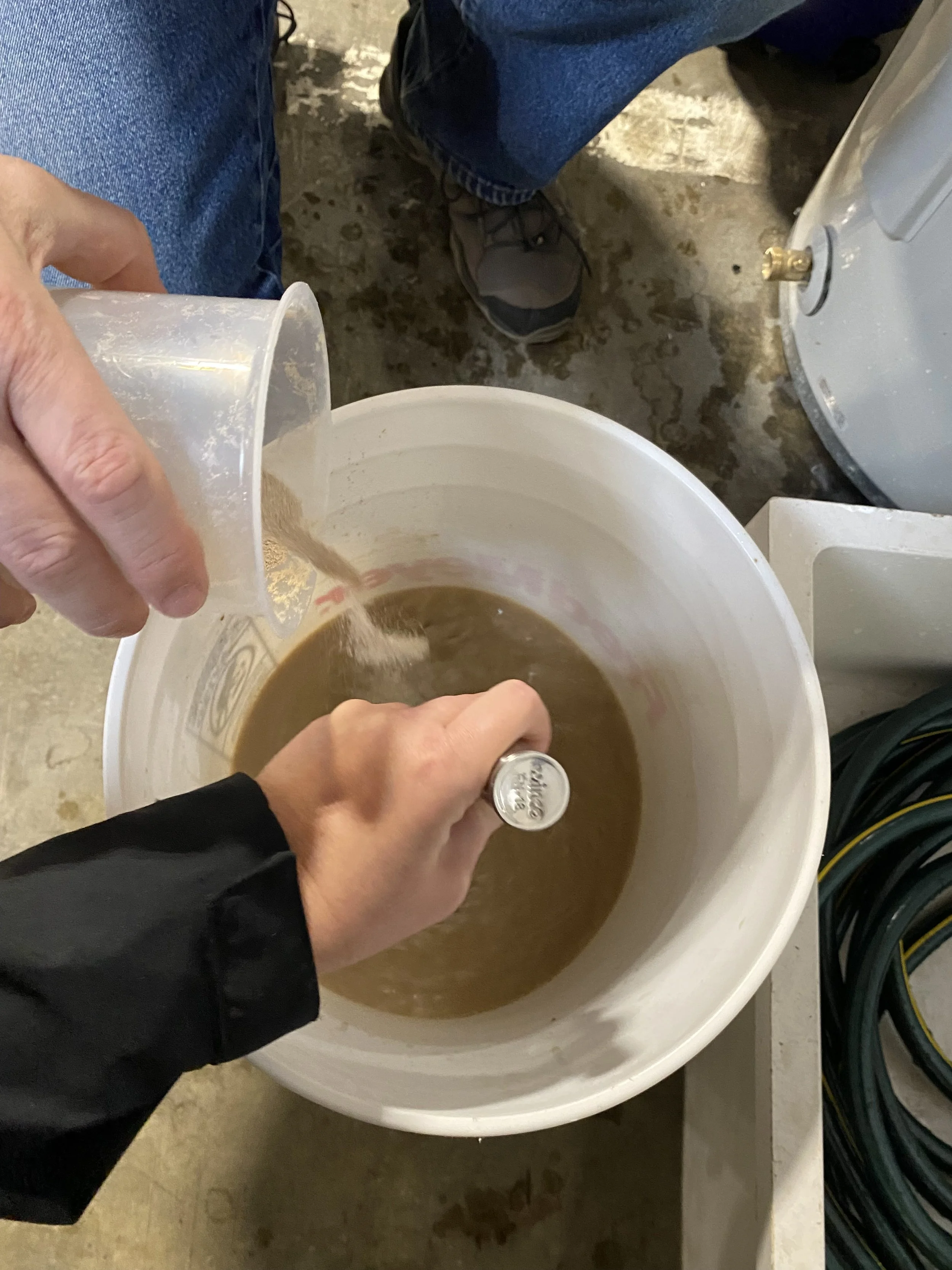Preparing yeast for inoculation.