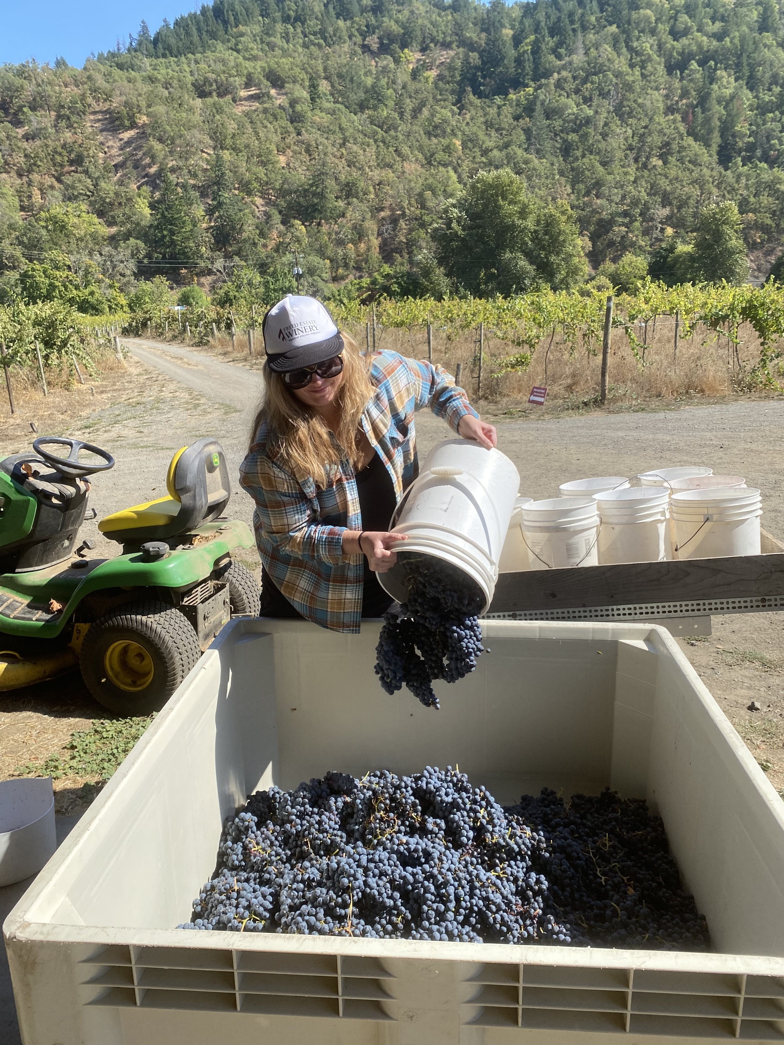 We drove down to Winston feeling a little uneasy, but still excited about this adventure we were embarking upon. We spent the night at my mom’s house and woke up early in the morning to pick. It took way longer than we anticipated, as we couldn’t just simply pick clusters and throw them in buckets, but we had to examine each cluster to see if it had rot or raisining. So we ended up staying overnight again and leaving to go back to Portland on Friday morning.