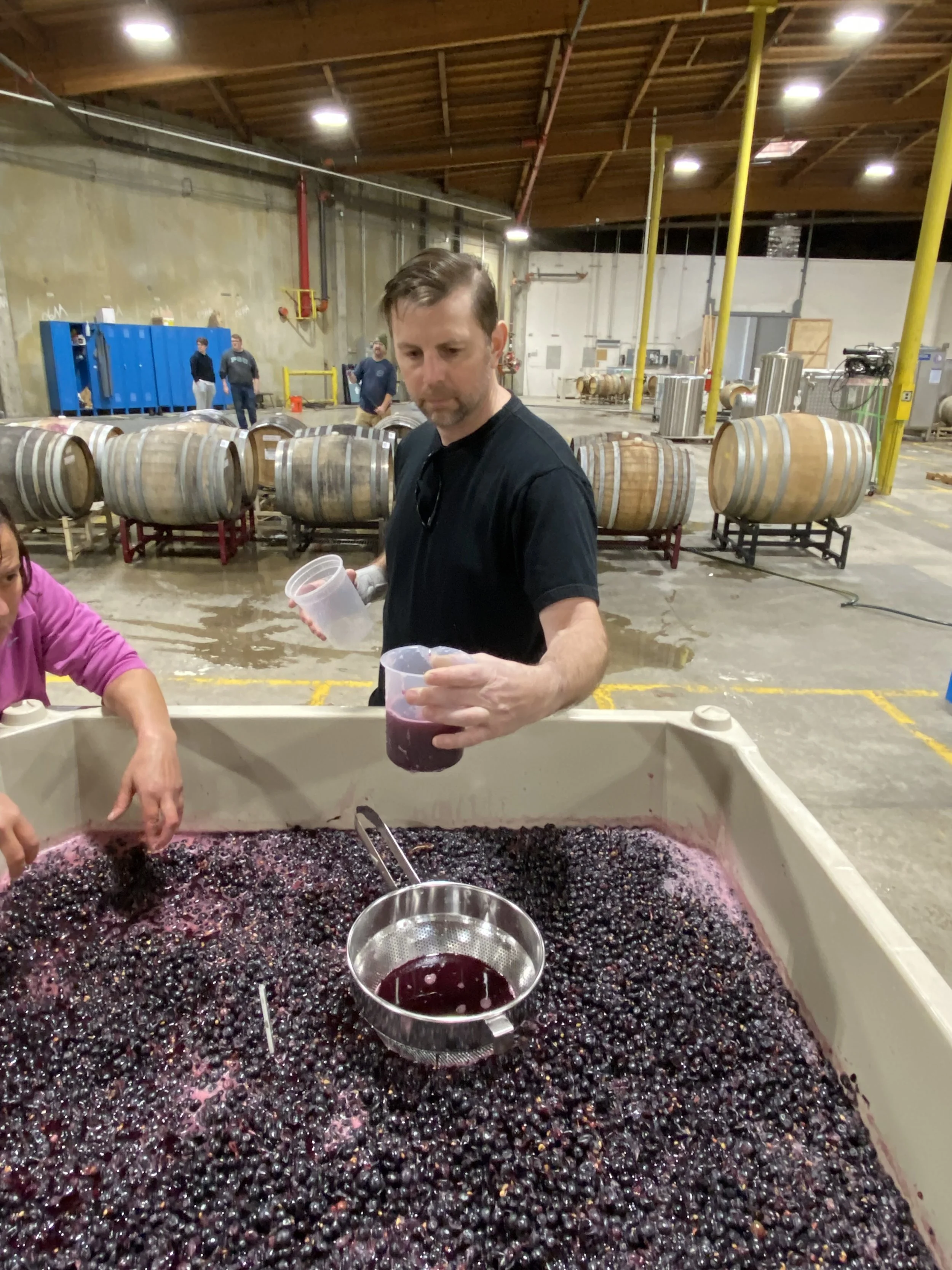 Here are some photos of some of the winemaking we got to do over the days and weeks following harvest: