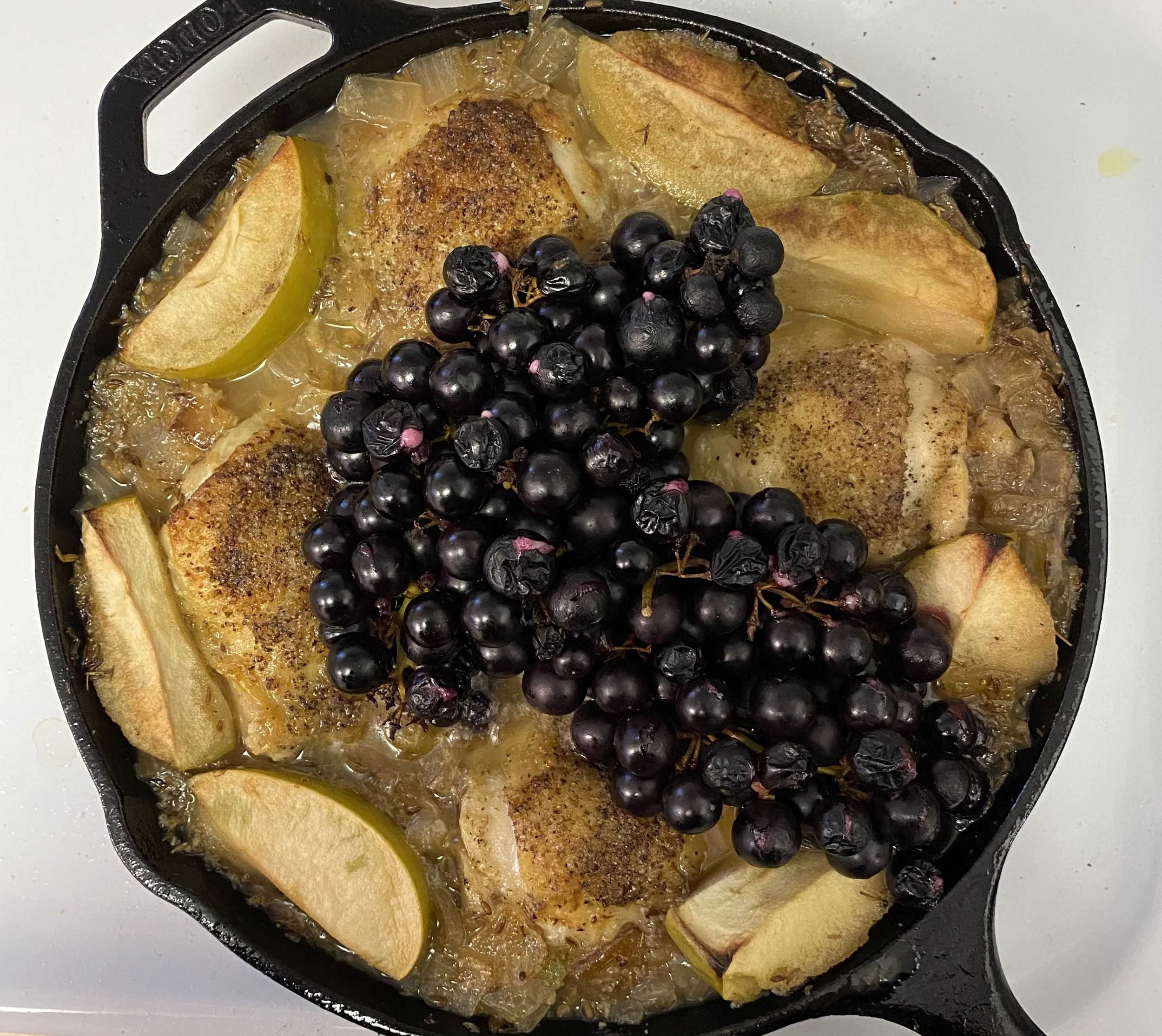 I can’t express enough how exhausted we are, and how little time there is for anything but work, work, work. Nevertheless, we made time for a nice little harvest dinner. I saved some clusters of the Tempranillo and used them in this braised chicken dish. It’s based on a marriage of this recipe from Epicurious and this recipe from Half-Baked Harvest. It was delicious, and I’d love to make it a harvest tradition. I don’t love the apples in it, though. They were too mushy. I served it over quinoa, but polenta would be better. We paired it with Freed Estate 2019 Tempranillo. Fitting!