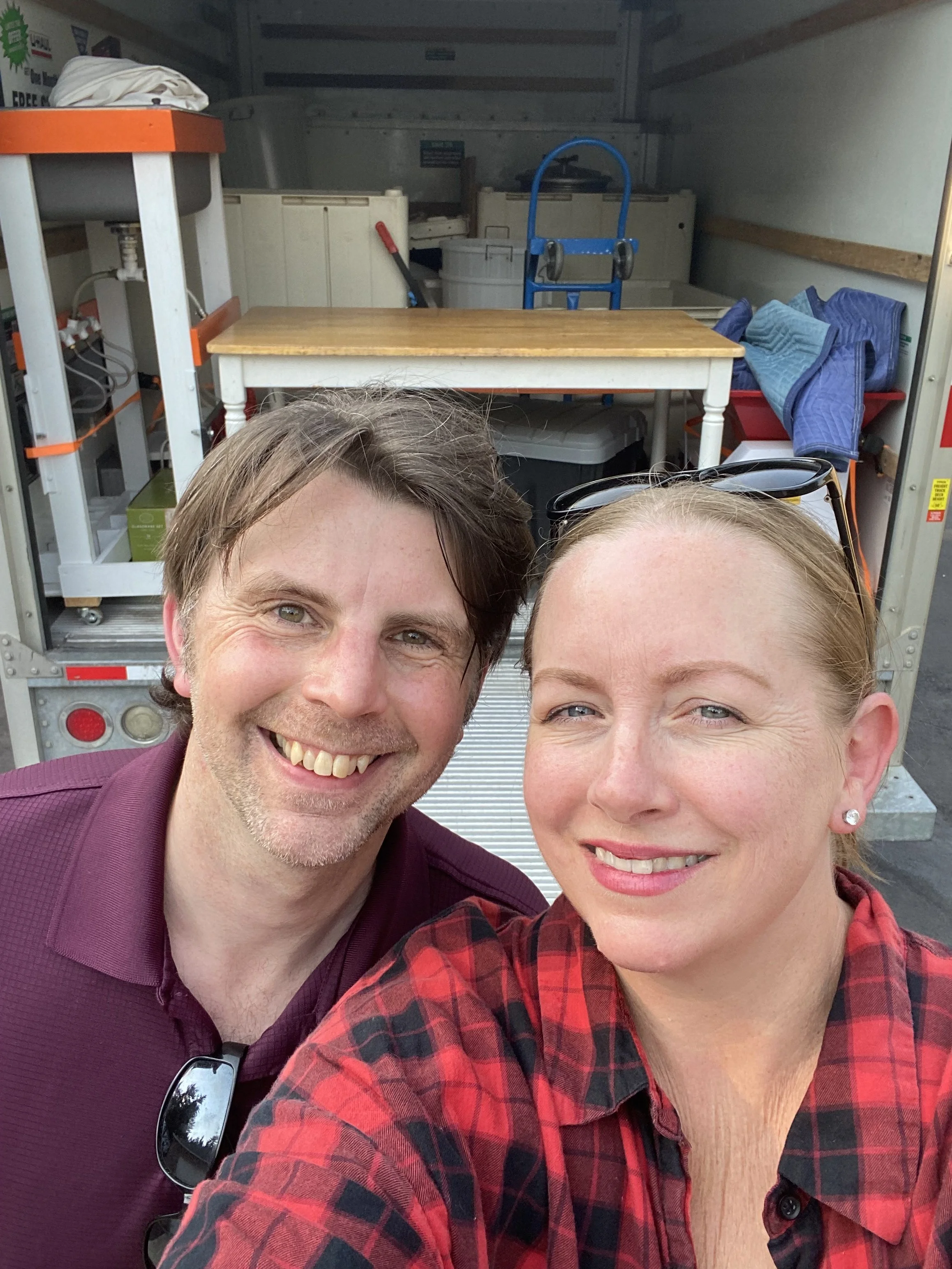 We rented a U-Haul to pick everything up. I could hardly contain my excitement about this huge move to start making our little baby together. We got a great deal on an operation that will allow us to make up to 10 tons of wine at a time—field bins, fermenters, a press, a bottling machine, and so much more stuff.